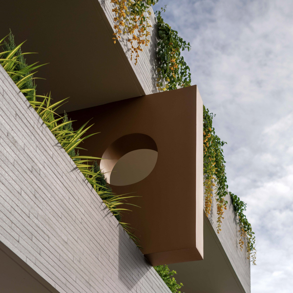 Ngôn ngữ kiến trúc của công trình đề cao tính tối giản, vì thế các thành phần kiến trúc chính được giữ nguyên vẻ đẹp và tính chất hình học, để cấu trúc khối và không gian hiện lên trọn vẹn, chân thật như vốn dĩ nó nên là. Các thành phần như khối  và mảng tường được thể hiện nguyên bản, không bị xâm lấn bởi vật liệu, chi tiết hay màu sắc, trang trí thêm thắt.